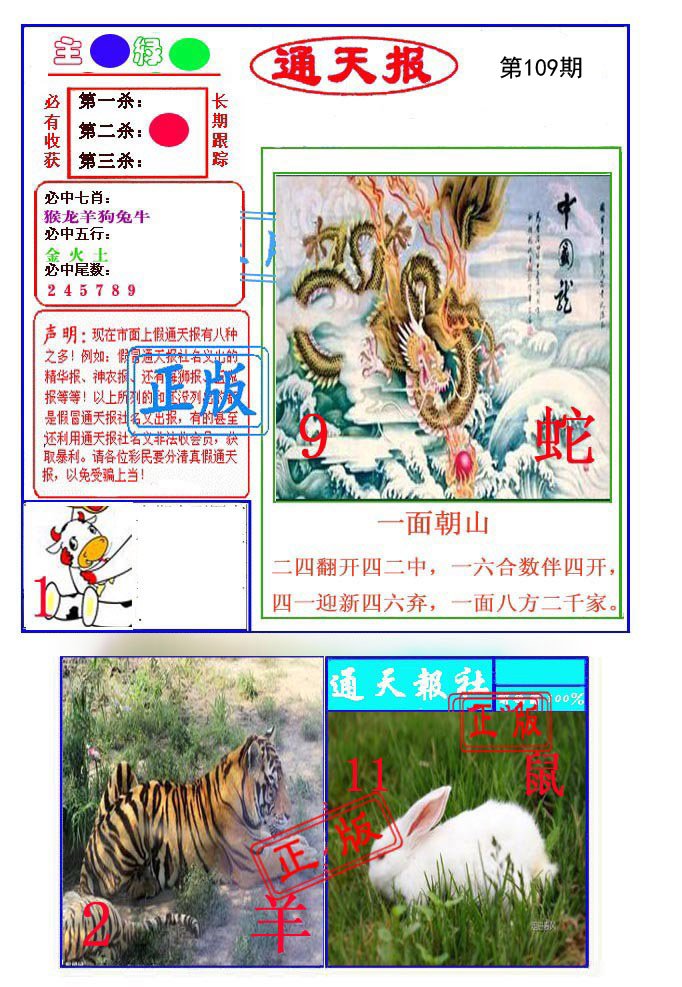 | 106期:平特一肖:龙 |
