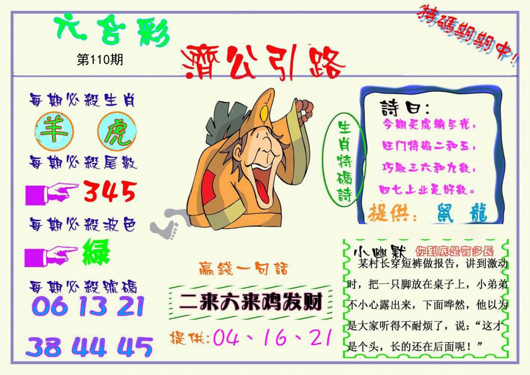 | 108期:平特一肖:鸡 |