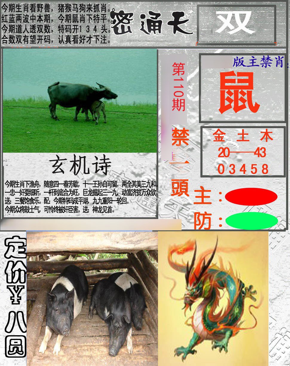 | 101期推荐⑤肖:蛇牛兔鼠猪 |