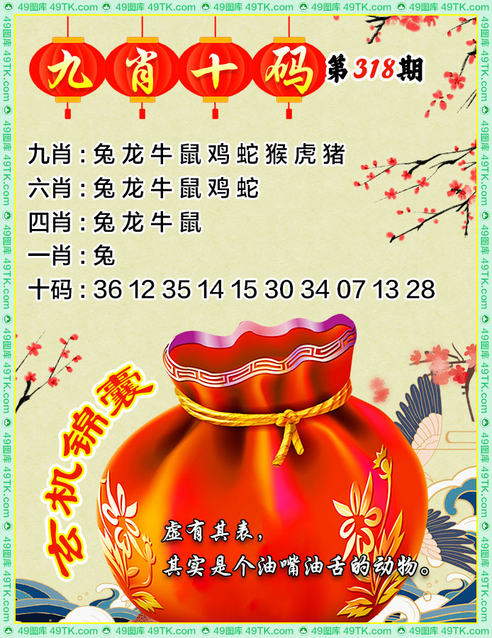 | 318期:精选九肖:龙羊鸡兔鼠马狗猪牛 |