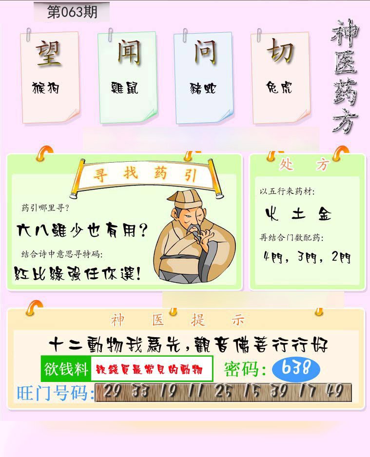 | 063期推荐⑤肖:虎猴鸡猪牛 |