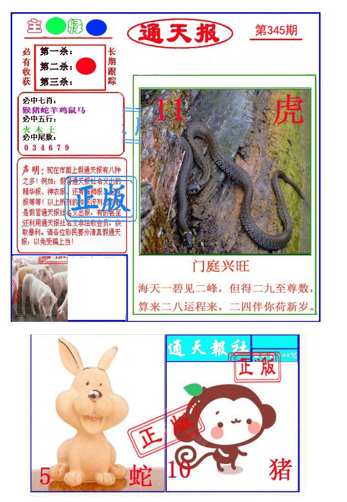 | 345期:精选六肖:蛇狗虎鸡牛兔 |