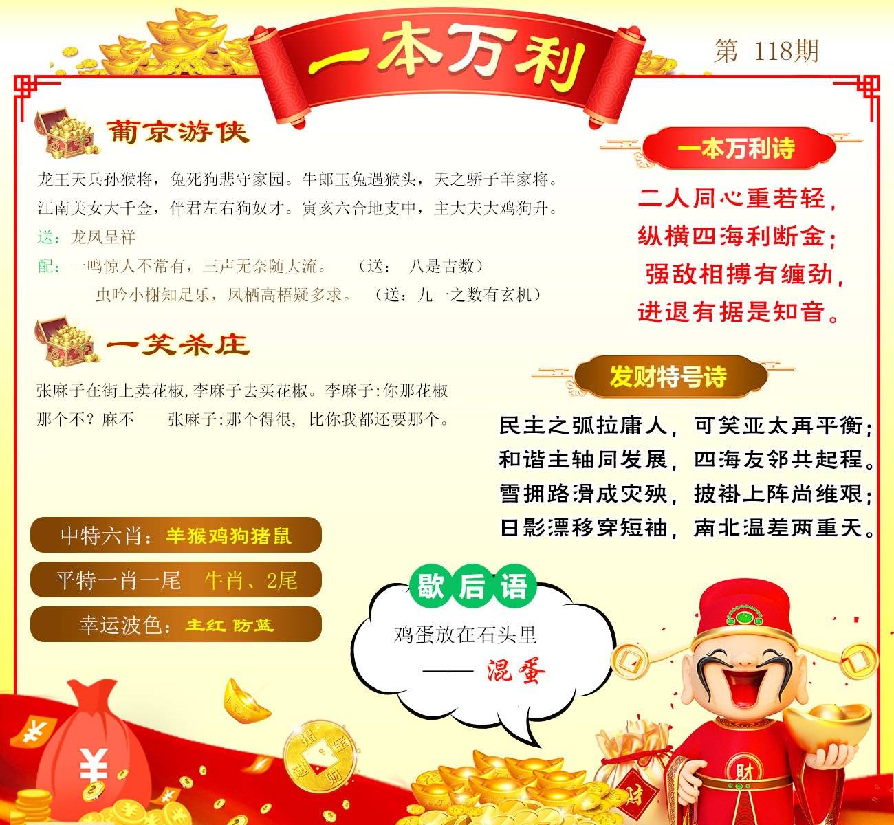 | 118期:香港AAAAA级【九肖十码】大胆砸 |