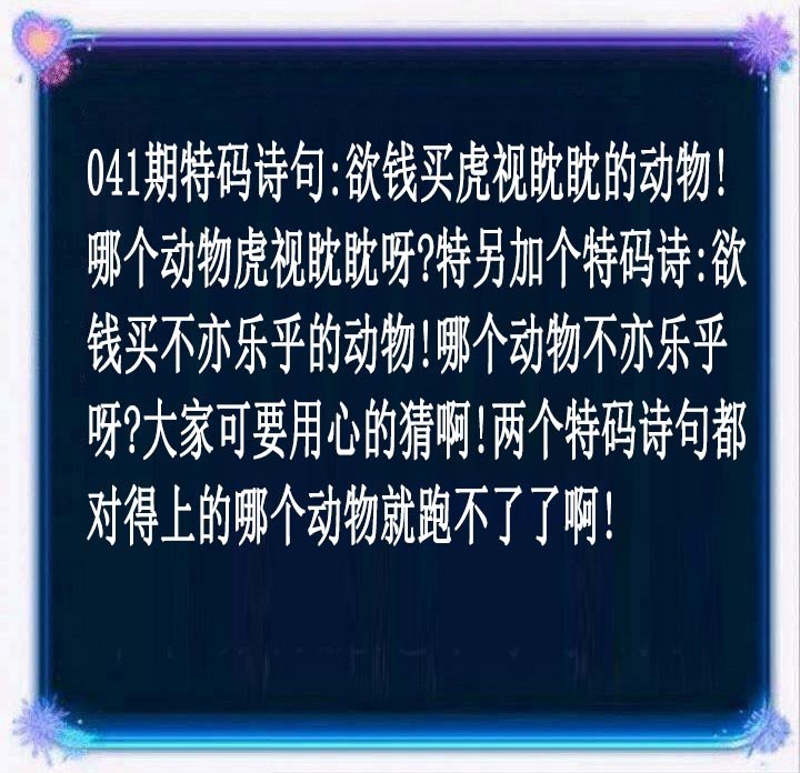 | 041期:精选二肖:虎蛇 |