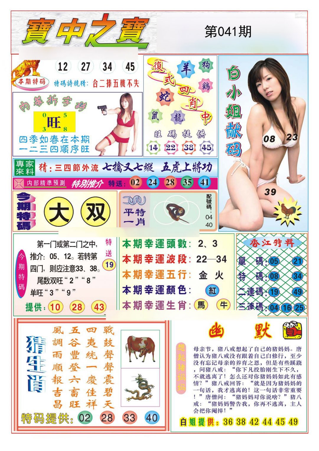 | 041期:精选四肖:虎蛇猪鸡 |