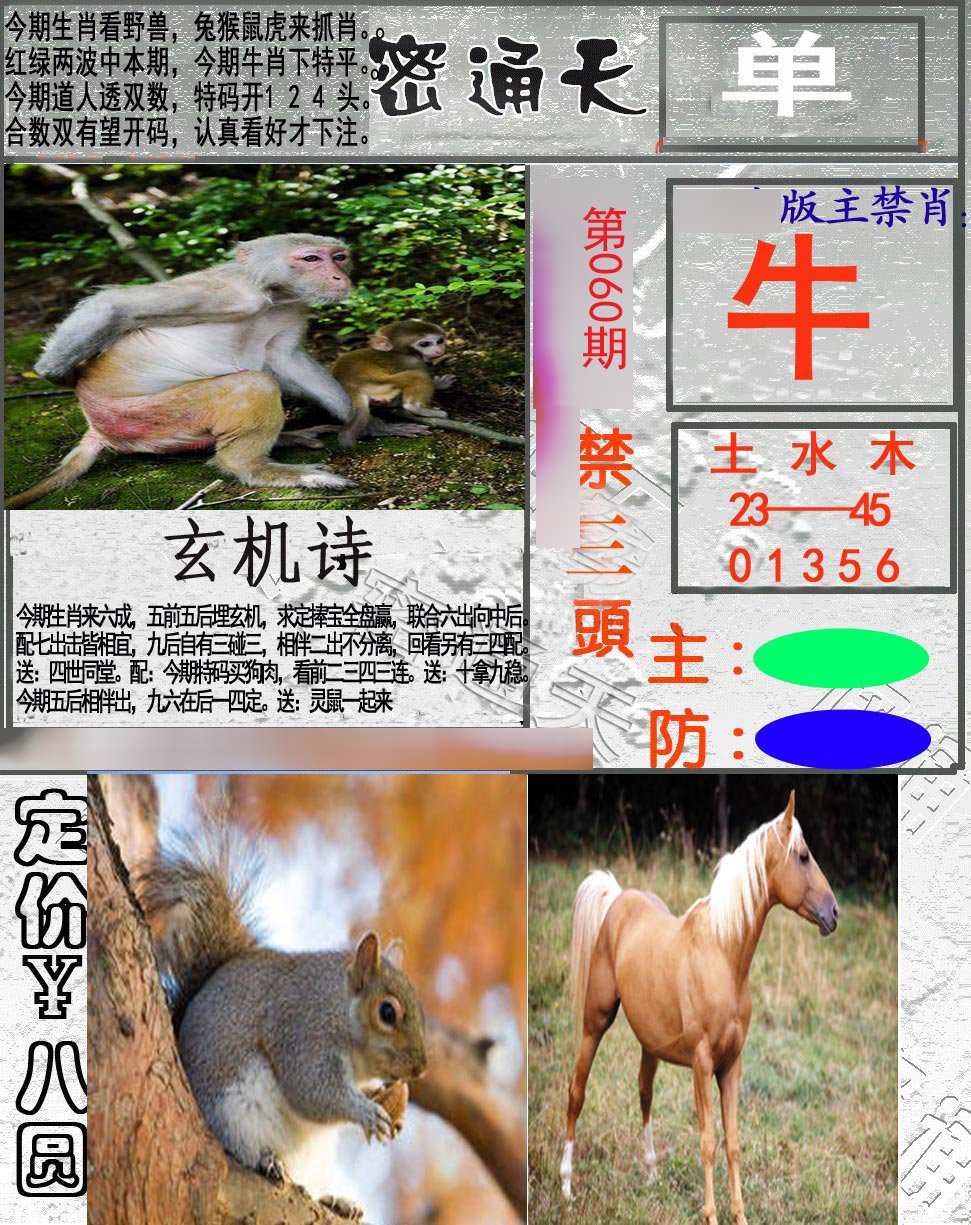 | 057期推荐⑤肖:牛蛇狗兔猴 |