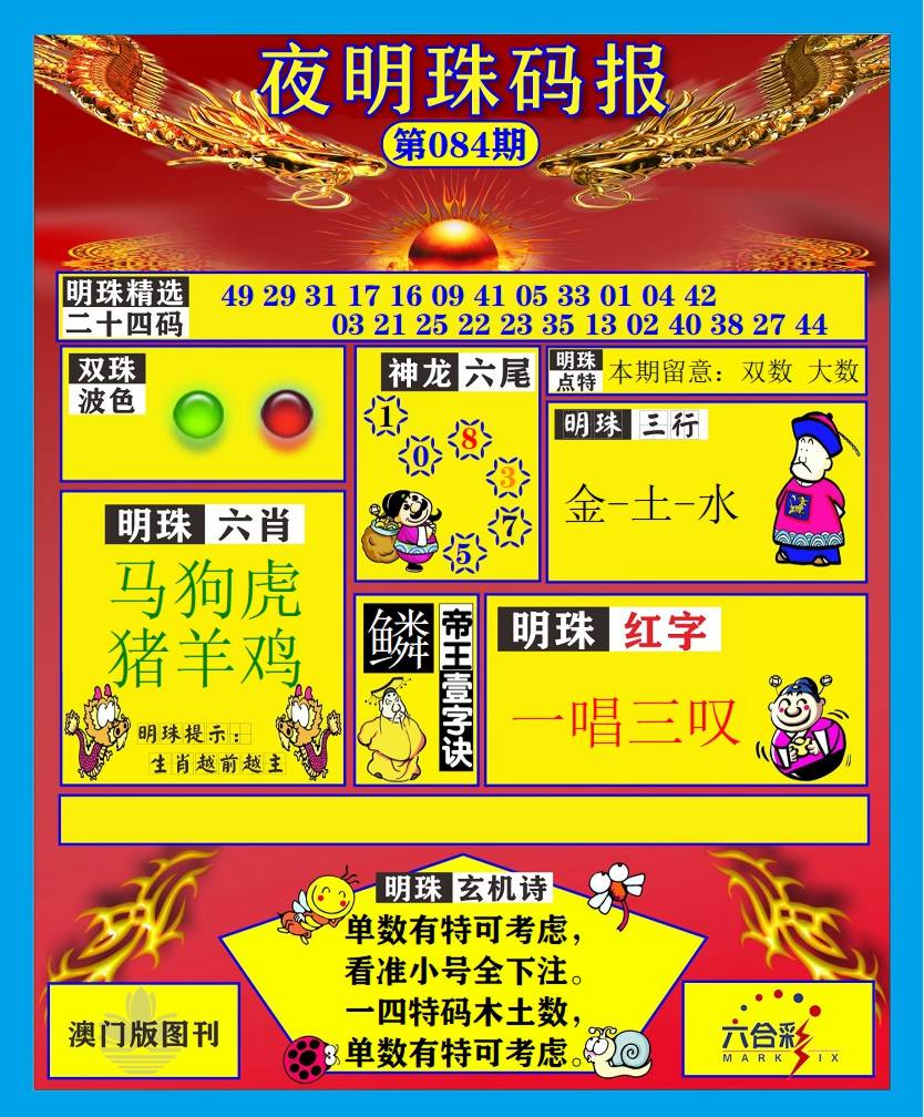 | 084期:平特一肖:狗 |