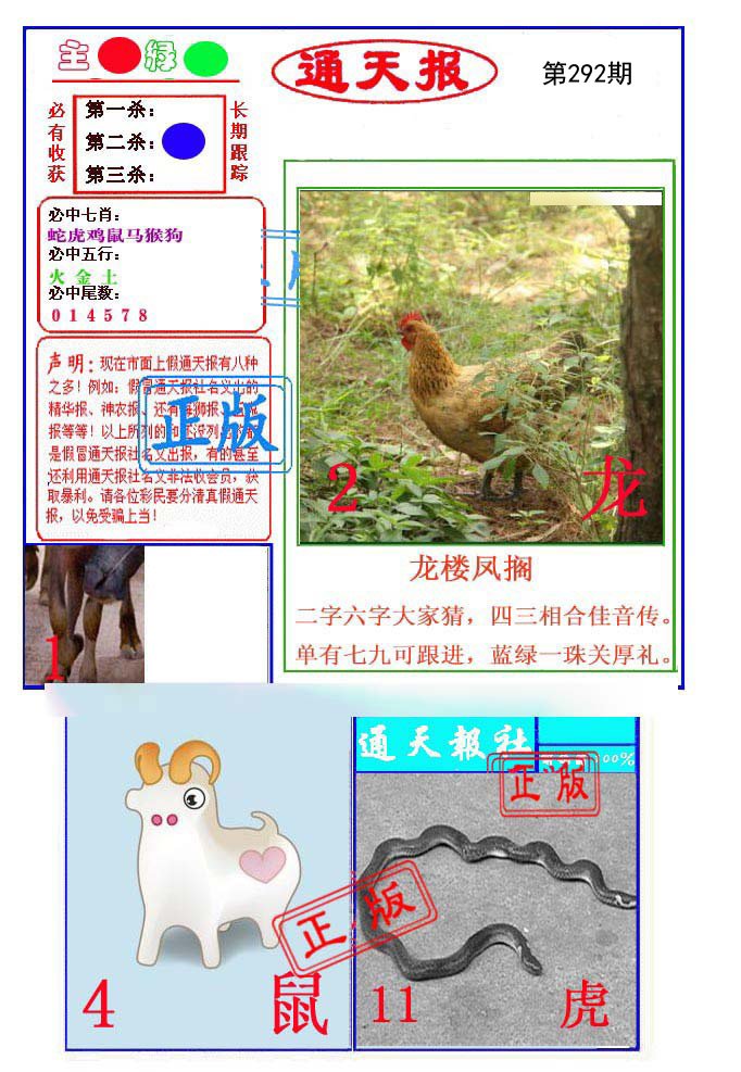 292期推荐⑤肖:鼠虎鸡蛇龙 |